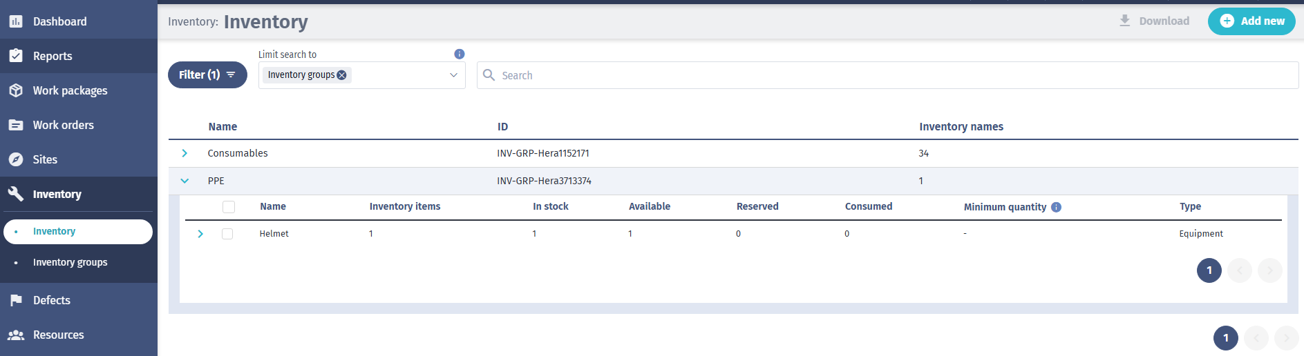 The groups are also visible under the "Inventory" tab where users can view and search for inventory: