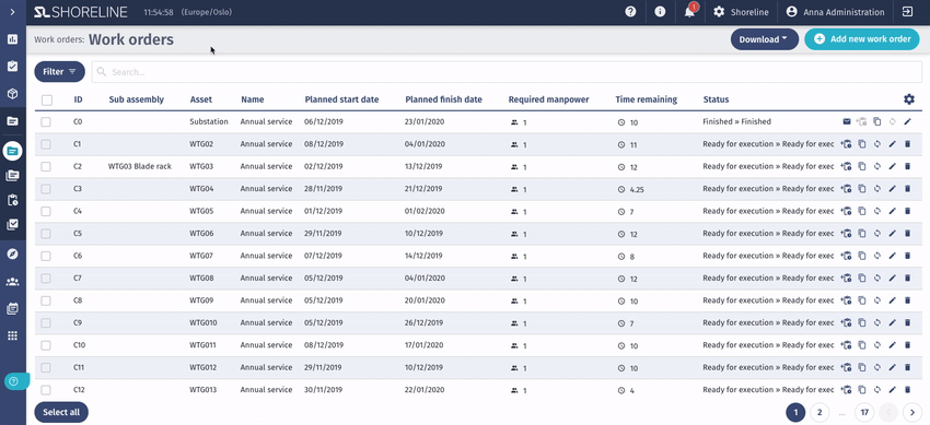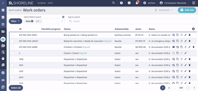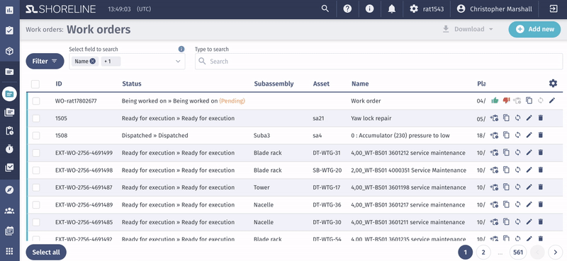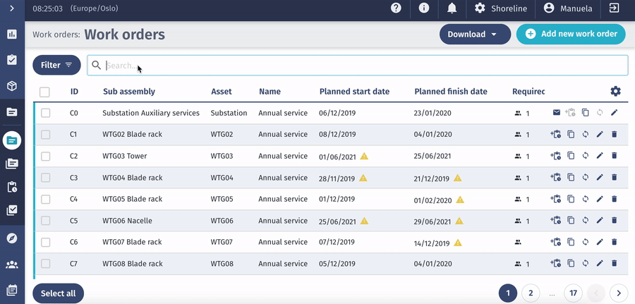 To get a better overview and to find the relevant work orders, several possibilities are available by filtering existing work orders. It is easy to find a work order by using the filtering, sorting, and search options. You can also save filter settings that you configure.