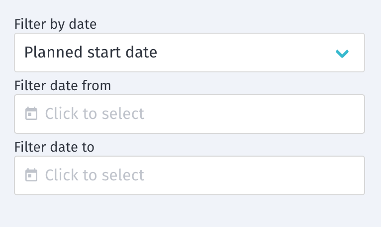 Filter by date | Here it is possible to define a filter by date and which type of filter. |